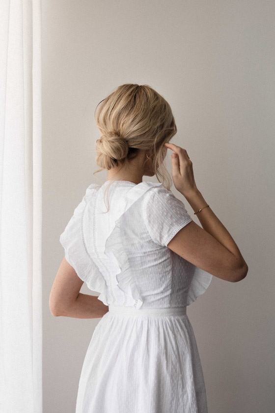 إذا كان فستانكِ يأتي بتصميم كبير ومليء بالتفاصيل، فيمكنكِ اختيار تسريحة الكعكة المشدودة لأعلى التي تمنحكِ إطلالة ساحرة، وتزيد جمال لمساتكِ الأخيرة، كما أنها تناسب أغلب أشكال الوجه، وبالتالي لا تشعرين بتغير كبير في ملامحكِ. وكذلك تسريحة الكعكة المنخفضة، التي تضيف لمسة من الرقة على إطلالتكِ، وتجعلكِ مميزة للغاية، كما أنها تمنحكِ جرعة من الكلاسيكية، فهي تتناسب مع الفساتين من القماش الساتان والحرير، وتأتي بتصاميم ناعمة ورقيقة.
