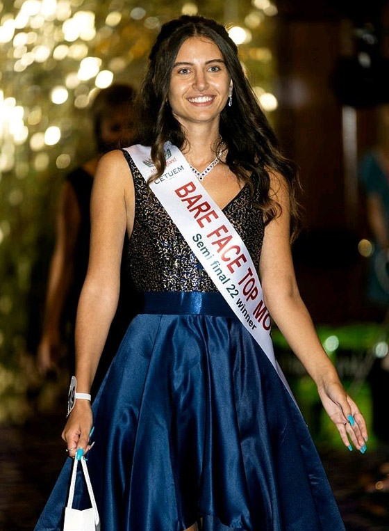 كما تابعت أن المرء في حال كان سعيدا ببشرته، فلا يجب أن نُجبره على تغطية وجهه، قائلة: "عيوبنا تجعلنا ما نحن عليه وهذا ما يجعل كل فرد فريدا". إلى ذلك لفتت أنها لطالما استعانت بمساحيق التجميل في سن مبكرة إلا أنها قررت تجنب التقاليد في المسابقة، مشددة: "لقد قبلت مؤخرًا أنني جميلة في بشرتي ولهذا قررت التنافس بدون مكياج".