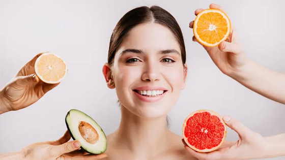 4- الاهتمام بمحتوى أطباقنا: يرتبط تعزيز نضارة البشرة بما تحتويه أطباقنا، نظراً للتأثير المباشر لنظامنا الغذائي على حالة البشرة. ويُنصح في هذه الحالة بالتركيز على تناول الفاكهة والخضار الغنيّة بالبيتاكاروتين نظراً لمفعوله المضاد للجذيرات الحرة والمُنشّط لإنتاج الميلانين. يُنصح أيضاً باستهلاك الأسماك وثمار البحر على الأقل مرتين أسبوعياً نظراً لغناها بالأوميغا3 ذات المفعول المضاد للجذيرات الحرة والحامي للخلايا. هذا بالإضافة إلى استبدال المشروبات المنبّهة بالشاي الأخضر.