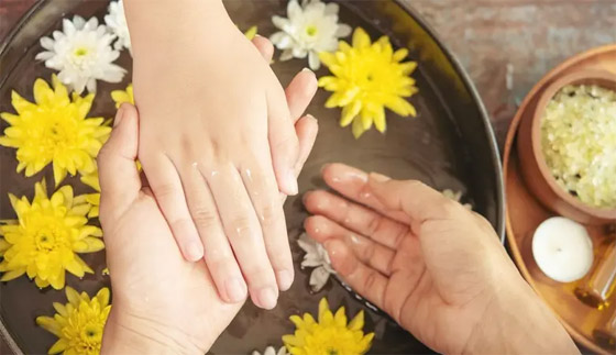 4- غسلها بصابون ناعم: اعتدنا خلال جائحة كورونا على استعمال الجل المعقّم بكثرة متناسين أنه يتسبب بجفاف بشرة اليدين والأظافر، ولذلك يُستحسن حصر استعماله في الأماكن العامة فقط أما في المنزل فمن الأفضل غسل اليدين بالماء وصابون ناعم مُرطّب يكون غنياً بزبدة الشيا التي تعتني ببشرة اليدين والأظافر على السواء.