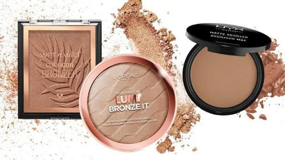 البرونزر: البرونزر منتج مرن متعدد الأغراض. ويمكن استخدامه كأحمر خدود، أو للكونتور أو كظلال للعيون. اللون البني الناعم يعمل بشكل جيد للغاية على العيون، وهو منتج له شعبية عالمياً، ويمكنك استخدامه أيضاً لمنح خدودك بعض التوهج.