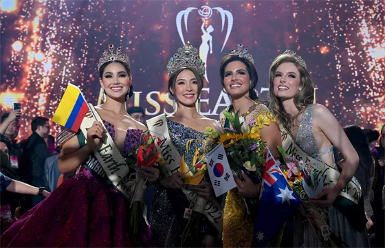 - من اليسار إلى اليمين: ملكة جمال كولومبيا أندريا أغيليرا، وملكة جمال كوريا الجنوبية مينا سو تشوي، وملكة جمال فلسطين نديم أيوب، وملكة جمال أستراليا شيريدان مورتلوك، في صورة جماعية بعد ليلة التتويج خلال النسخة الـ 22 من مسابقة ملكة جمال الأرض في مانيلا، الفلبين 29 نوفمبر/تشرين الثاني 2022.
