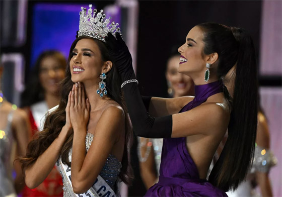 - توجت ديانا سيلفا (إلى اليسار) من منطقة العاصمة بلقب ملكة جمال فنزويلا الجديدة من قبل ملكة جمال فنزويلا 2021 المنتهية ولايتها، أماندا دوداميل، في بوليدرو دي كاراكاس في كاراكاس، في 16 نوفمبر/تشرين الثاني 2022.
