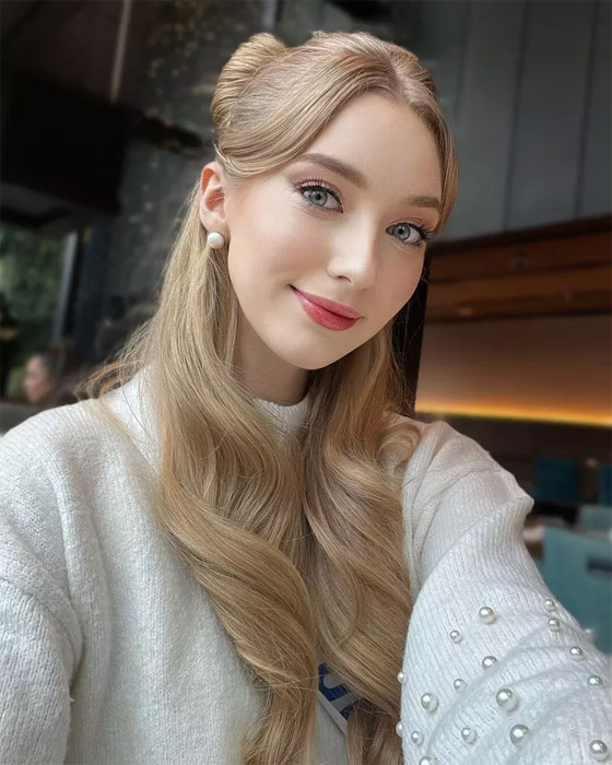 - حاملة لقب "ملكة جمال روسيا لعام 2022"، آنا لينيكوفا، خلال مؤتمر صحفي حول نتائج مسابقة ملكة جمال روسيا 2022.