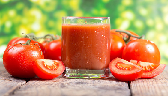 4- عصير الطماطم: يتميّز عصير الطماطم بغناه بالفيتامين C ومُضادات الأكسدة مما يُساعد على تفتيح البقع الداكنة التي تظهر على البشرة. يكفي خلط ملعقتين كبيرتين من عصير الطماطم مع ملعقتين كبيرتين من الحليب أو الزبادي ثم تطبيق هذا الخليط على الوجه والعنق لمدة تتراوح بين 30 و40 دقيقة، على أن يتمّ شطفه جيداً بالماء بعد ذلك، ويُنصح بتكرار هذه الخطوة عدة مرات أسبوعياً للحصول على النتائج المرجوّة.