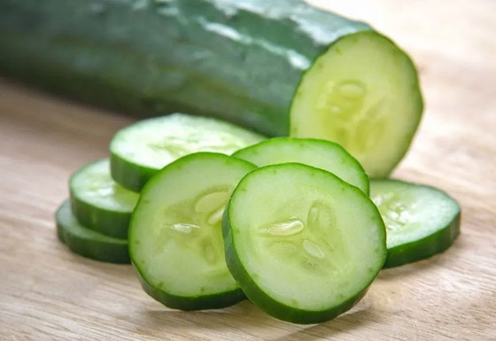 5- شرائح الخيار: يتميّز الخيار بقدرته الفائقة على ترطيب البشرة بفعل غناه بالماء والفيتامينات، كما تتمتع شرائح الخيار بفعالية في مجال تفتيح لون البشرة إذ يكفي تطبيقها على المناطق الداكنة في الوجه والجسم لبضع دقائق مرين يومياً ثم شطفها بالماء الفاتر للحصول على بشرة صافية، ويمكن أيضاً هرس شرائح الخيار مع أوراق النعناع الطازجة وتطبيق الخليط بشكل قناع على الوجه لمدة 15 دقيقة بهدف تنظيف الجلد، مُعالجة حروق الشمس، وتبييض البشرة. يمكن استعمال هذا القناع عدة مرات أسبوعياً.
