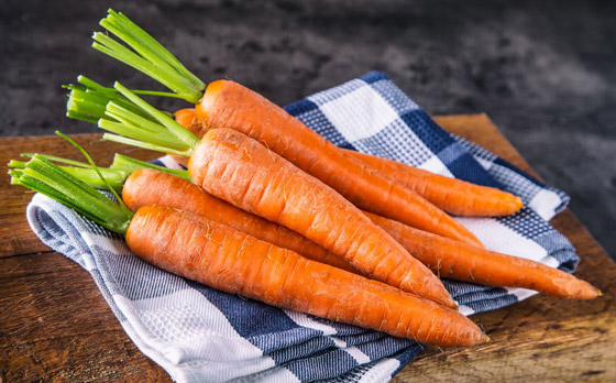 • الجزر: يتميّز بغناه بالبيتاكاروتين الذي يُحارب جفاف البشرة، المُصنّف على أنه أحد أبرز أسباب التجاعيد. يندرج البيتا كاروتين ضمن مُضادات الأكسدة وهو يتحوّل في الجسم إلى فيتامين A المسؤول عن حسن عمل وظائف البشرة.