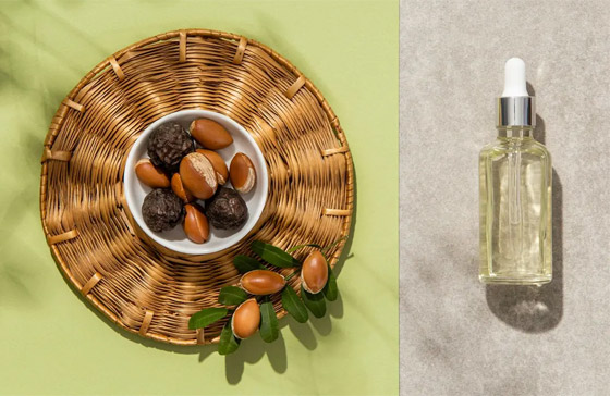 4- زيت الأرغان لمفعوله المُعزّز للشباب: تنمو شجرة الأرغان بشكل حصري في جنوب غرب المغرب، وهي تُنتج زيتاً تستعمله النساء المغربيات للعناية التجميليّة بالوجه، والجسم، والشعر. ويتميّز زيت الأرغان بغناه بالحوامض الدهنيّة مما يجعله مثالياً لتعزيز نعومة وليونة البشرة والشعر. وهو غنيّ بفيتامين A وE بالإضافة إلى الفيتوستيرول مما يُكسبه مفعولاً مُجدّداً، وحامياً، ومُعزّزاً لمتانة الجلد والشعر. يدخل هذا الزيت في تركيبات العديد من مستحضرات العناية بالبشرة والشعر ويمكن استعماله بصيغته النقيّة كمصل أو كمزيل للماكياج.