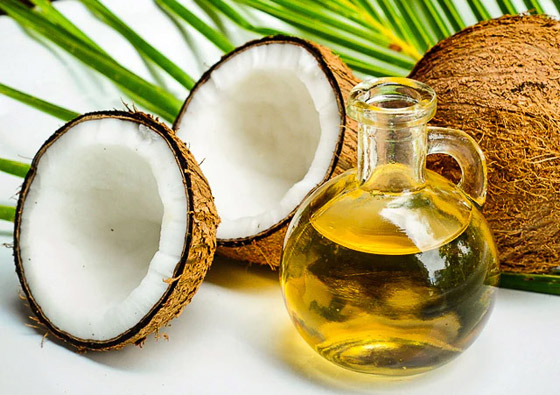 1- زيت جوز الهند: ويعتبر زيت جوز الهند غنياً بالأحماض الدهنية، لذا يمكن أن يساعد على ترطيب الشعر وتقويته، مما يقلل من التقصف واحتمال تساقط الشعر.