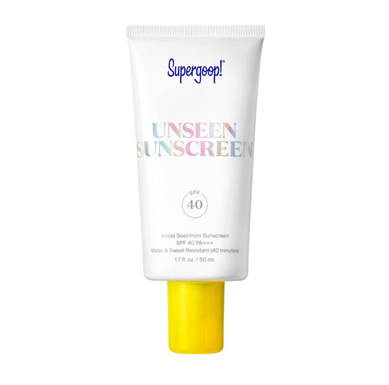 Supergoop! واقي الشمس بعامل حماية (SPF 40) الخالي من الزيوت، ويبدو غير مرئي على بشرتكِ، ولا تشعرين بوجوده، ويمنحكِ حماية (SPF 40) مع نهاية طبيعية على البشرة ودون رائحة، لذلك ستنسين أنكِ ترتدين واقي الشمس، لذلك يعد المفضل لدى: ليدي غاغا، آشلي غراهام، لوسي هيل، ولورا هارير.