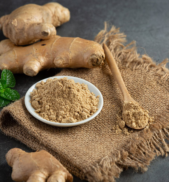 يحتوي الزنجبيل على مستويات عالية من مضادات الأكسدة والخصائص المضادة للالتهابات التي تساعد في منع علامات الشيخوخة. وجدت دراسة أن الزنجبيل يحتوي على مركبات فينولية وفلافونويدات ذات خصائص مضادة للأكسدة يمكن أن تتحكم في إنتاج الجذور الحرة الضارة .