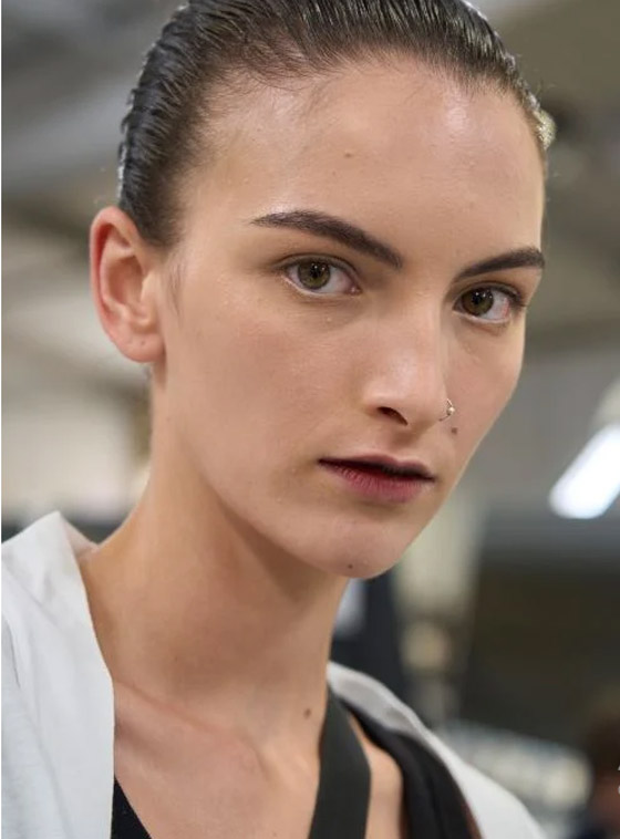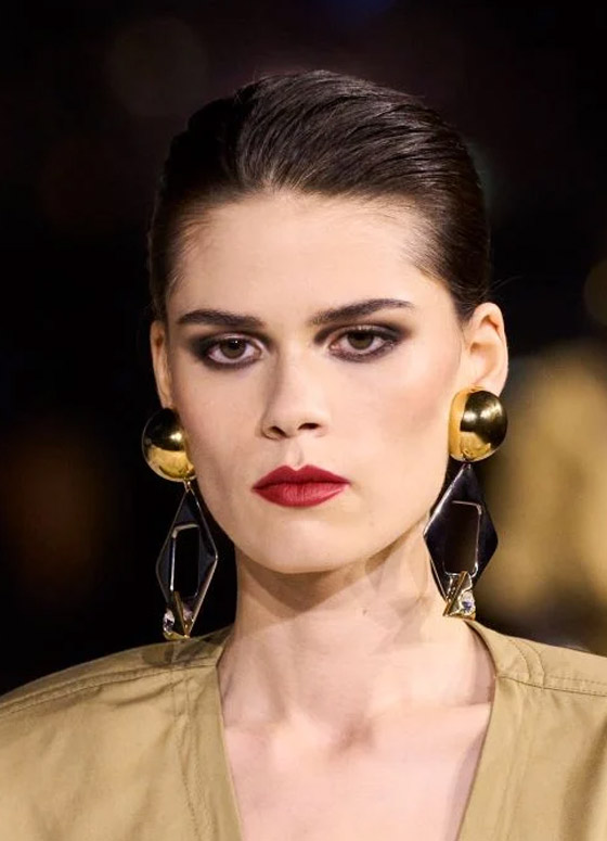 تحضري خلال الربيع والصيف المقبلين، لإطلالة أنثوية نارية حادة وقوية، تكون مرتكزة على مكياج عيون باللون الأسود فوق الجفن العلوي وعلى منبت الجفون السفلية، جنباً إلى جنب مع أحمر الشفاه المخملي الأحمر الغامق، وهي صيحات مكياج لفتت الأنظار بشدة وبرزت في عرض أزياء دار سان لوران Saint Laurent، وبالتأكيد ستكون إحدى الصيحات الرائجة الأكثر شعبية خلال موسم ربيع وصيف 2024.