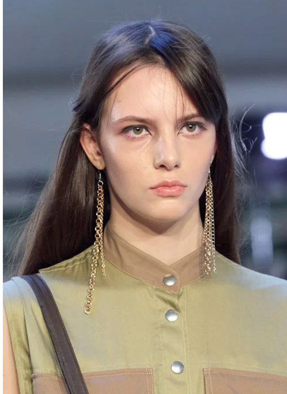 أما في عرض فيكتوريا توماس Victoria Tomas، فبرزت موضة البشرة اللامعة الخالية من الشوائب والعيوب، وهي إحدى صيحات المكياج التي من الواضح أنها ستعود بقوة في موسمي الربيع والصيف المقبلين. وقد اعتمدتها الدار إلى جانب الكحل الغامق على خط الجفون العلوية وأحمر الشفاه الغلوسي الشفاف.