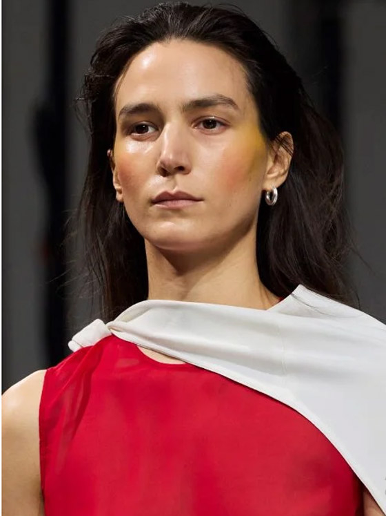 كذلك، كان لافتاً البلاش الملون على الوجنيتن بلونين مختلفين في عروض دار أزياء بيتر دو Peter Do، حيث ظهرت عارضاتها بمكياج بشرة خفيف لجهة كريم الأساس، مع البلاش الأصفر والزهري معاً على الوجنتين، وهي صيحة مكياج مميزة ومتجددة وتمنح المرأة إطلالة منعشة خلال الربيع والصيف.