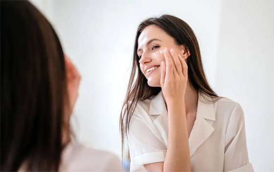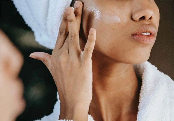 - مكوّنات فعّالة جداً: توصي الدكتورة مامينا باختيار كريمات مُرطّبة بمفعول مُعزّز لشباب البشرة ومُضاد للتجاعيد، تكون أيضاً غنيّة بمُضادات الأكسدة مثل الفيتامين C، والريزفيراترول، والنياسيناميد التي تُعزّز إنتاج الكولاجين مما يُساهم في الحفاظ على ليونة البشرة ونعومتها ومتانتها. يمكن أيضاً اختيار كريم غني بالبيبتيدات التي تُساعد في إعادة تشكيل الكولاجين، على أن يترافق استعمال هذه المكونات مع تطبيق كريم حماية من الشمس كونه يحمي الجلد من فقدان الكولاجين ويُساعد على تجدّده كما يحميه من ظهور التجاعيد المبكرة والبقع الداكنة.