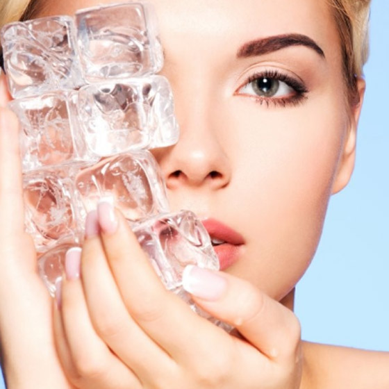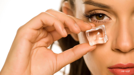 تساعد مكعبات الثلج على تقليل الالتهاب والاحمرار، وما عليكِ سوى فرك مكعب من الثلج بعد لفه بقطعة قماش نظيفة وناعمة، على وجهكِ، مما يعمل على تضييق المسام وتقليل الانتفاخ ويجعل بشرتكِ تتوهج، وعن طريقها قولي وداعاً لتلك الحبوب المزعجة وأهلاً بالبشرة الصافية والناعمة.