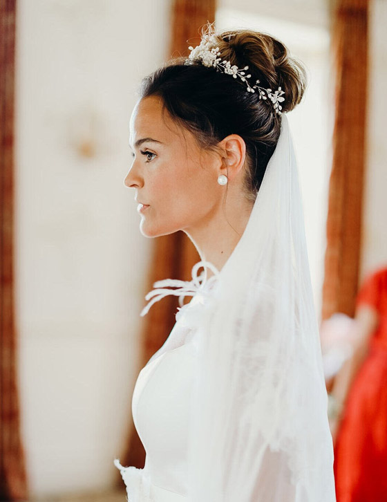يضيف التاج المضفر ذو الطراز الرومانسي والغريب، لمسة تشبه القصص الخيالية إلى أي مظهر زفاف، مثل الهالة التي تحيط بالرأس، ينضح التاج المضفر بأناقة ملكية يصعب مقاومتها، ويمكن لعروس 2024 أن ترتقي بهذا الأسلوب بإضافات مثل الزهور أو مجوهرات الشعر الرقيقة، مما يضفي لمسة من التألق والرومانسية.