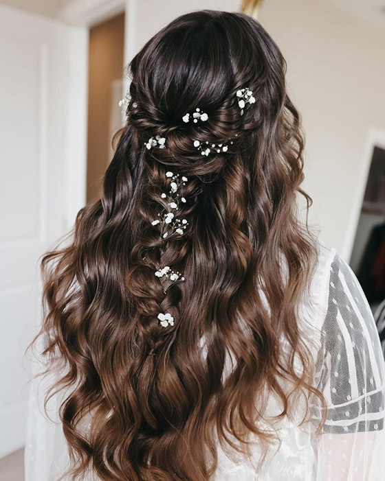 تعتبر التموجات البوهيمية المرادفة للجمال الطبيعي المريح، مثالية للعرائس اللاتي يخططن لحفلات الزفاف في الهواء الطلق أو على الشاطئ في صيف 2024، وتشيد تصفيفة الشعر هذه بالروح الخالية من الهموم وأسلوب الحياة البوهيمي، وتمنحك جمالاً سهلاً وساحراً وآسراً. يمكنكِ تعزيز هذه التسريحة بإضافة إكسسوارات مثل تيجان الزهور أو دبابيس الشعر الرقيقة، مما يضفي لمسة من الرقي على المظهر المريح.
