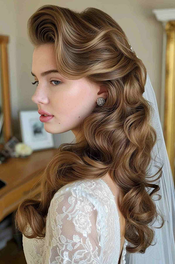 جاذبية سحر هوليوود القديم لا تتلاشى أبداً، بفضل تاريخها الغني والخالد، تضفي تسريحات الشعر المستوحاة من الطراز القديم سحراً يبعث على الحنين والأناقة. نتوقع أن نرى المزيد من العرائس في صيف 2024 يخترن تسريحات الشعر التي تذكرنا بهذا العصر الذهبي، مثل التموجات الكلاسيكية، أو تسريحات الشعر المثبت. يمكن لهذه الأنماط، إلى جانب الأكسسوارات والملابس المناسبة، أن تنقل جمالية حفل الزفاف بأكملها إلى زمن الأناقة التي لا مثيل لها.