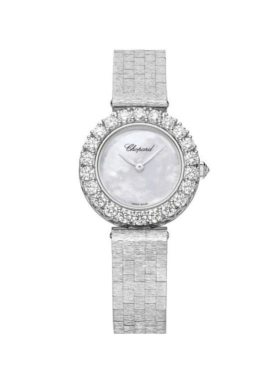 تلتقط «شوبارد» بمهارة جمال الألماس في ساعة «L'Heure du Diamant Round» الساحرة، التي تعتبر الأفضل لكل عروس عصرية، إذ جمعت هذه الساعة بين الأناقة والتصميم العصري والأحجار الكريمة أيضاً. صُنعت هذه الساعة من الذهب الأبيض عيار 18 قيراطاً، ورصعت بـ2.23 قيراط من الألماس الأبيض المختار بدقة، ما يمنحها بريقاً لا يضاهى.