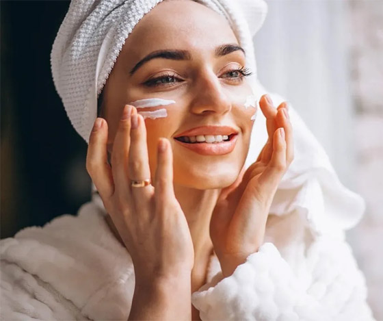 - اختيار مستحضرات عناية تحتوي على مواد كيمياوية: تُشير الإحصاءات العالميّة إلى أننا نُطبّق على البشرة حوالي 170 مادة كيمياويّة يومياً لدى استعمال مُستحضرات العناية والماكياج. بعض هذه المواد قادر على النفاذ إلى عمق البشرة أما بعضها الآخر فيزيد من خطر الاضطرابات الهرمونية ويُعرضنا للإصابة بالسرطان كما يُسرّع آليّة شيخوخة البشرة. ولذلك، ينصح الخبراء في هذا المجال بالحدّ من استعمال المستحضرات التجميليّة التي تحتوي على مواد كيمياويّة تؤثّر على الهرمونات مثل البارابين، والفتالات، والمواد الكيمياوية العطريّة. يُنصح أيضاً بالحدّ من استعمال المُستحضرات التي تحتوي على أحماض ألفا هيدروكسي كونها تزيد من حساسية البشرة على الأشعة ما فوق البنفسجيّة، والتركيز على استعمال مستحضرات تحتوي على مكونات عضويّة وطبيعيّة تكون خالية من المبيدات، والأسمدة، والمواد الكيمياوية المؤذية.