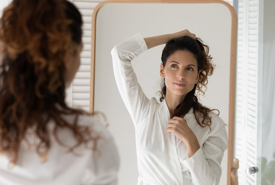 الخطوة الأولى نحو الحفاظ على شعر صحي، بين عشية وضحاها، هي الاستثمار في أغطية الوسائد الحريرية؛ لأن الحرير بسطحه الأملس، يقلل بشكل كبير الاحتكاك، وهو سبب متكرر لتكسر الشعر أو تجعده. إلى جانب ذلك، تساعد أغطية الوسائد الحريرية على إبقاء شعركِ رطباً؛ عن طريق تقليل كمية الرطوبة، التي يمكن أن يفقدها شعركِ في الهواء أثناء النوم، وهذا التغيير الصغير، والمهم في بيئة نومك، يُحدث فرقًا هائلاً في صحة شعركِ.