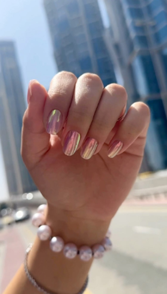 يضفي طلاء الأظافر المعدني لمسة من التألق والرقي على إطلالتكِ خلال عيد الأضحى، فاللونان الذهبي والفضي شائعان بشكل خاص؛ لأنهما يستحضران شعوراً بالفخامة والثراء، كما يضيفان بريقاً إلى ملابسك، ويجعلانك تبرزين. لكن إذا كنت تبحثين عن الابتعاد عن الألوان المعدنية التقليدية، ففكري في الظلال المعدنية من الأزرق، أو الأخضر، أو الأرجواني، لأنها تمنحكِ مظهراً أكثر حداثة وعصرية، وتكون مثالية لمن تريد أسلوباً فريداً.