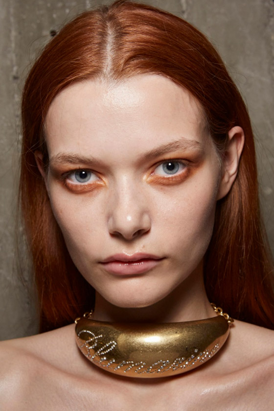 مما لا شك، أن صيحة رسمات العيون الملونة، أضافت بريقاً خاصاً على مكياج العيون هذا العام. بإمكانك استخدامها في إطلالتك الرسمية، لإبراز جمال عينيك بشكل جذاب. هذه الألوان تمنح عينيك سحراً خاصاً يجعلها تتألق تحت الأضواء. اختاري ظلال العيون باللون النحاسي، وطبقيه على كامل الجفون المتحركة، وعلى طول خط الرموش السفلية، إلى جانب تكثيف رموشك بالماسكرا. لتسليط الضوء على جاذبية نظرة عينيك، اعتمدي مكياج بشرة موحداً مع أحمر الشفاه النيود الغلوسي، على طريقة عارضة دار بلومارين Blumarine في أسبوع الموضة بميلان لربيع وصيف 2024. حتماً ستحظين بإطلالة لافتة وجذابة في مناسباتك.