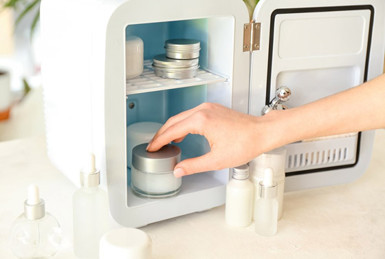 الإحساس بالبرودة والانتعاش سبب رئيسي لوضع منتجات العناية بالبشرة الخاصة بكِ في الثلاجة.. لكن، هل هذه الممارسة صحية، أو تقدم فوائد إضافية لبشرتكِ؟ أصبح تخزين منتجات التجميل في الثلاجة ممارسة اكتسبت شعبية في السنوات الأخيرة، حيث تزعم الكثيرات أنها تطيل العمر الافتراضي لمنتجات العناية بالبشرة، وتوفر فوائد إضافية لها، لكن يبقى السؤال: هل تخزين منتجات التجميل في الثلاجة مفيد، حقاً، لبشرتكِ؟