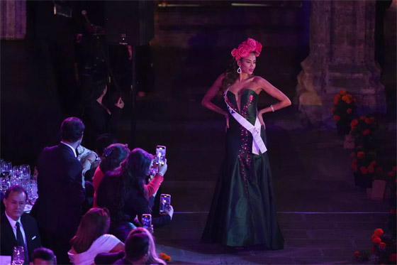 - ملكة جمال بوتسوانا ثانولو كيوتلويل، في مسيرة كاترينا بمناسبة "يوم الموتى" قبل أسابيع من مسابقة ملكة جمال الكون الثالثة والسبعين، في مكسيكو سيتي.