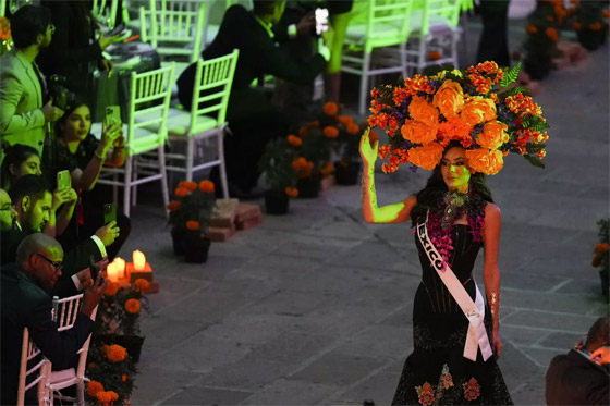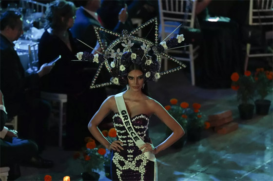 - ملكة جمال الصين جيا تشي، تستعرض فستانها في مسيرة كاترينا بمناسبة "يوم الموتى" قبل أسابيع من مسابقة ملكة جمال الكون الثالثة والسبعين، في مكسيكو سيتي.