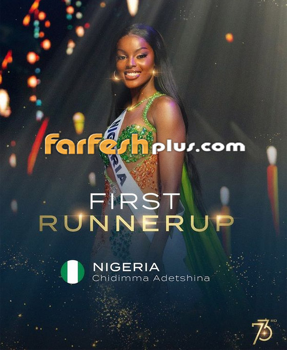 فيما حلّت ملكة جمال نيجيريا، تشيديما أديتشينا، في المركز الأول كوصيفة أولى، تلتها المكسيكية ماريا فرناندا بلتران كوصيفة ثانية، والتايلاندية سوشاتا شوانجسري كوصيفة ثالثة، بينما احتفظت ملكة جمال فنزويلا، إيلينا ماركيز، بلقب الوصيفة الرابعة.