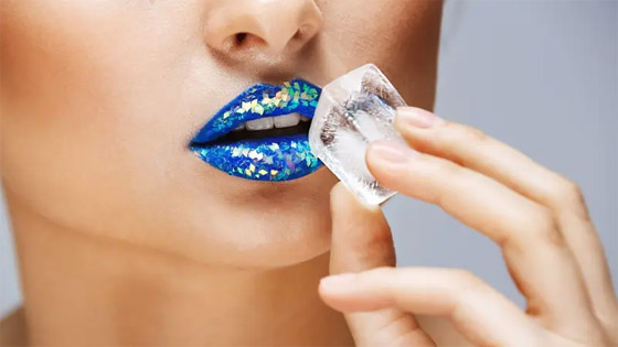 تتمتع برودة مُكعّبات الثلج بمفعول فوري مُعزّز لاكتناز الشفاه. يكفي تغليف هذه المُكعبات بمحرمة (فوطة) نظيفة قبل تدليكها على الشفاه لحوالي دقيقتين. يُنصح باعتماد هذه الحيلة قبل تطبيق الماكياج الصباحي.