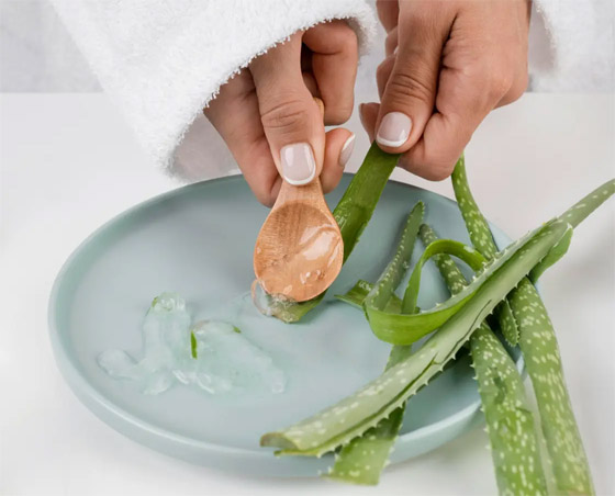 4- الألويفيرا: تُعرف هذه النبتة بخصائصها المُرطّبة للبشرة، ولكنها تتمتّع أيضاً بفعالية في علاج التصبّغات. يكفي تطبيق جلّ الألويفيرا على منطقة ظهور البقع الداكنة وتركه لمدة 30 دقيقة قبل شطفه بالماء الفاتر.