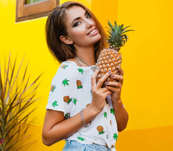 5- الأناناس: تتميّز ثمرة الأناناس بكونها علاجاً طبيعياً فعّالاً جداً للقضاء على التصبّغات. يكفي فرك قطعة صغيرة منها على البقع الداكنة لبضع دقائق قبل شطف البشرة بالماء الفاتر.