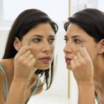 الحَلّ: استعملي كريم دهني لأخفاء العيوب أسفل العيون. الجلد المحيط بالعيون رقيق ويحتاج إلى التغذية والترطيب. كريم إخفاء العيوب سيخفف اللون الداكن ويرطب الجلد. (لا تستعملي الهلامِ، لأنه سيجعل السطح دبقا). لمنع انزلاق الكريم وتثبيته ننصحك باستعمال بودرة مضغوطة خفيفة.