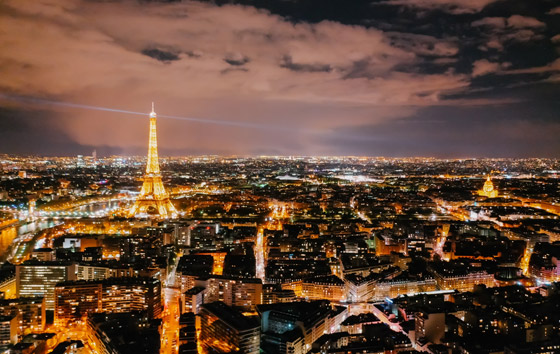 تتميز باريس، عاصمة فرنسا، بأجواء ليلية نابضة بالحياة، حيث يمكن للسائحين الاستمتاع بـجولات ليلية في نهر السين، أو بحفلات موسيقى الجاز في الأحياء القديمة. كما تشتهر المدينة بضمّ العديد من المقاهي والمطاعم، التي تقدم أجواءً رومانسية.
