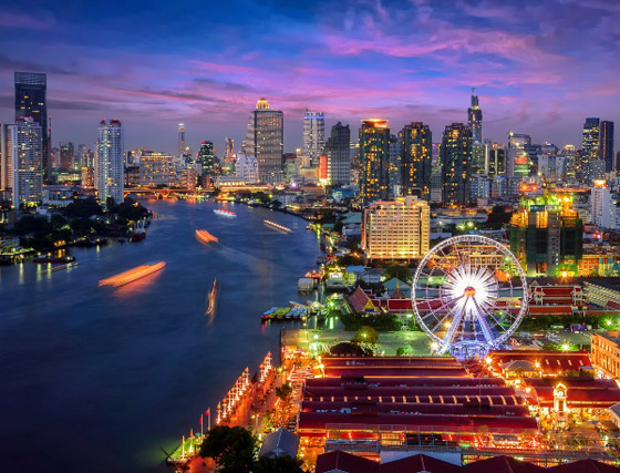تقدم بانكوك عاصمة تايلاند، تجربة ليليّة مختلفة، حيث يمكن للسائحين الاستمتاع بأسواق ليليّة مليئة بالحياة أو تجربة المطبخ التايلاندي الأصيل في المطاعم العائمة على نهر تشاو فرايا.