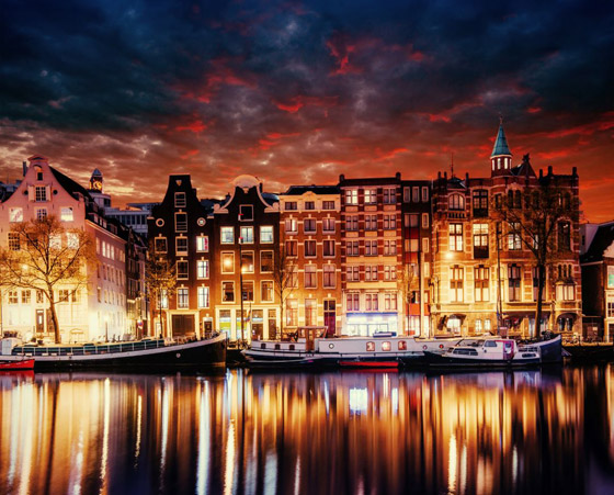 في أمستردام، عاصمة هولندا، يمكن الاستمتاع برحلة رومانسية في قنوات المدينة، واكتشافها من منظور مختلف. كما تشتهر أحياء عدة بحياتها الليلية الصاخبة، أو المقاهي الهادئة.