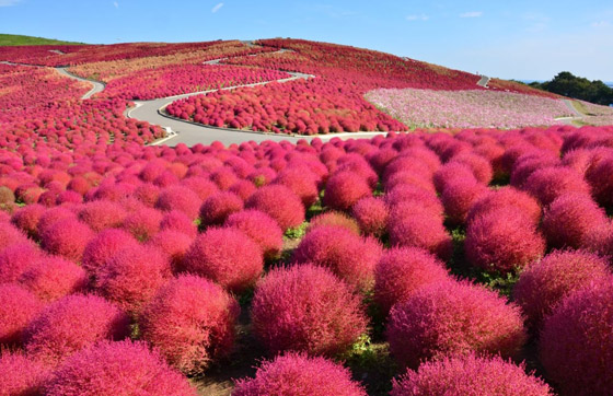 تتعرج المسارات الجميلة في متنزه هيتاشي الساحلي في اليابان عبر أحواض الزهور المليئة بملايين أزهار النرجس والزنبق والورود والنباتات الحمراء والنباتات الزرقاء الفاتحة التي تبدو وكأنها تمتد إلى ما لا نهاية. تتفتح الأزهار في كل موسم؛ ما يجعلها معلم جذب شهير على مدار العام، حيث يمكن استكشافه سيراً على الأقدام أو بالدراجة. يوجد أيضاً متنزه ترفيهي في الموقع، مجهز بعجلة فيريس وأفعوانية، حتى تتمكن من الاستمتاع بقليل من الأدرينالين بعد الاستمتاع بمشاهدة الزهور.