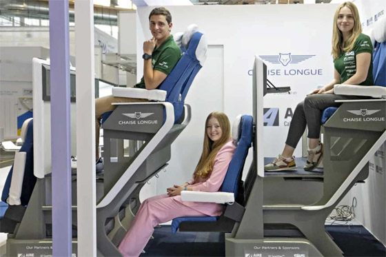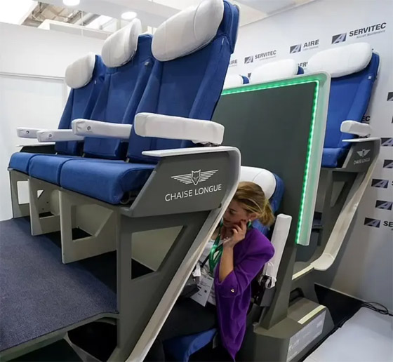 وقال التقرير إن الحل قد يصل قريباً عبر طائرات إيرباص الجديدة التي ستكون مقاعدها ذات طابقين، أو ستكون فوق بعضها بعضاً بما يوفر لشركات الطيران مقاعد إضافية ويوفر للركاب في نفس الوقت مساحة إضافية للجلوس. وتعمل شركة (Chaise Longue)، وهي شركة ناشئة مقرها مدريد في إسبانيا، مع شركة الطيران الأوروبية العملاقة لطرح تصميم غير عادي بمقعد واحد لأعلى وواحد لأسفل.