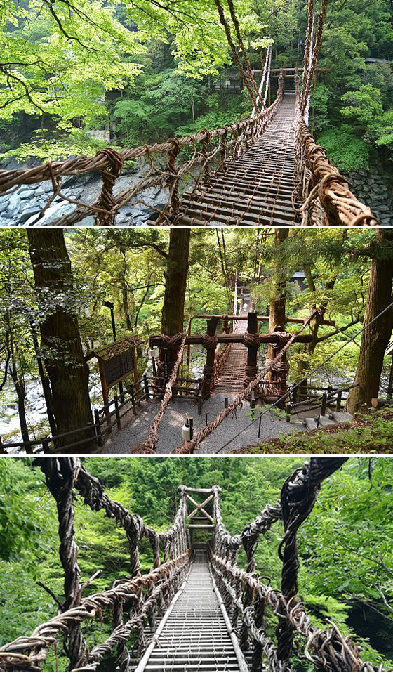 يعد أحد الجسور غير العادية في وادي إيا الياباني بين الجبال والينابيع الساخنة، وهو مصنوع من نباتات الكرمة. وعلى الرغم من قوة هذا النبات النسبية، إلا أنه غير مناسب حقاً لبناء الجسور لأنه غير متين وعرضة للتعفن. ومع ذلك يقال إنه استخدم عن عمد حتى يمكن قطع الجسر بسرعة في حالة مرور المحاربين الأعداء عليه، وبالتالي منعهم من عبوره.