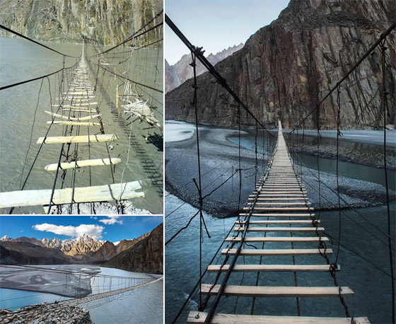 يقع هذا الجسر في شمالي باكستان في منطقة وادي هونز الشمالي، وقد أنشئ يدوياً من الحبال والألواح. تهب هناك رياح جليدية باستمرار، مما يتسبب في اهتزاز الجسر وتأرجحه المتواصل، كما أن هناك فواصل بين الألواح الخشبية على أرضية الجسر. تُوفي ما لا يقل عن عشرة أشخاص أثناء عبور هذا الجسر، فعند السقوط من هذا الجسر يغرق الشخص في نهر هونز المتدفق.