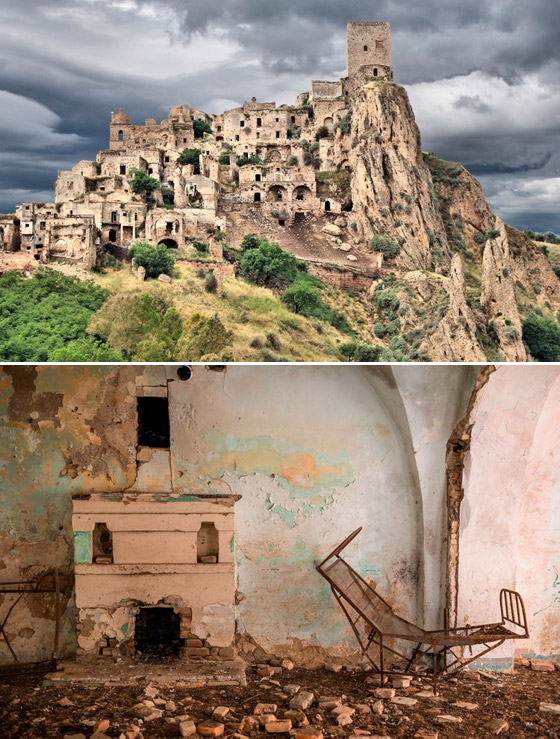 1. كراكو، إيطاليا: أُخليت المدينة التي تأسست في القرن الثامن بسبب العديد من الكوارث الطبيعية وفي العام 1963، أُجلي العديد من سكانها بعد حدوث انهيار أرضي. وفي عام 1972، ضربت الفيضانات المدينة فأصبحت الأوضاع أخطر، حتى كان الإخلاء الكامل في العام 1980 بسبب الزلزال الذي أجبر أهل المدينة على إخلائها. لكنه وبفضل تمثال مريم العذراء، الذي نجا بأعجوبة، تستضيف المدينة العديد من المهرجانات الدينية كل عام.