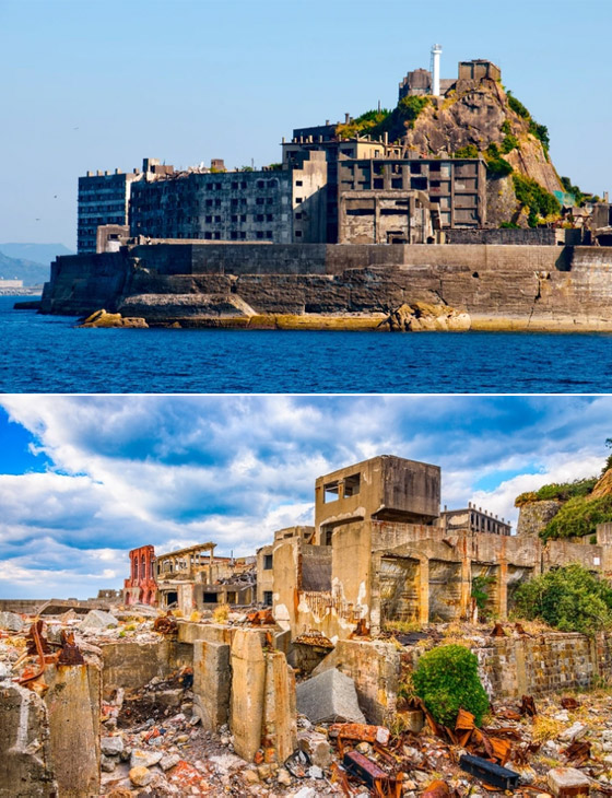 4. جزيرة هاشيما، اليابان: اشتهرت جزيرة هاشيما بمناجم الفحم تحت الماء،حتى سكن المدينة 5 آلاف من عمال المناجم وعائلاتهم، لكنه وبمجرد أن بدأت المناجم تجف في العام 1974، غادرها معظم السكان. أصبحت الجزيرة، التي كانت مزدهرة، مهجورة تماماً، باستثناء الجولات السياحية التي تأتي بالسياح في قوارب ليزوروا المنازل المهجورة والمتاجر والشوارع.