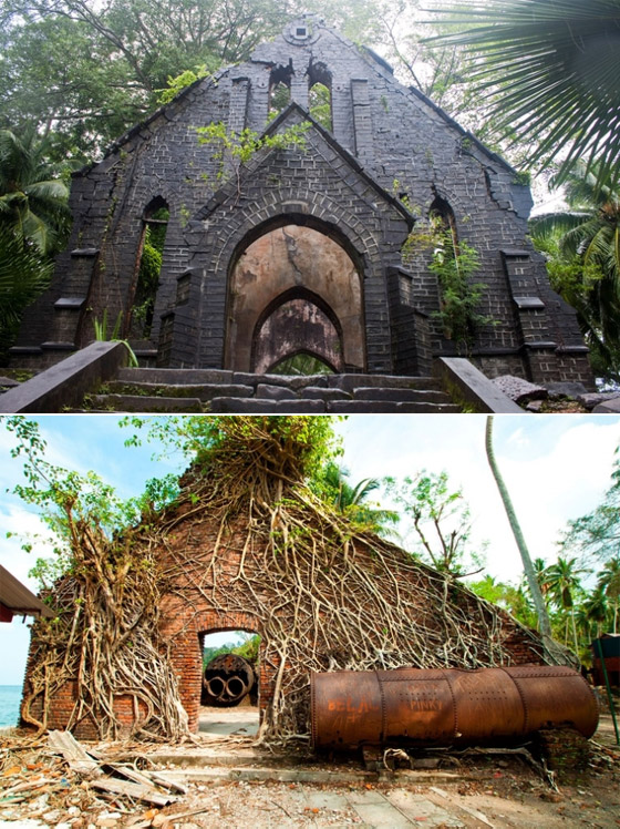 6. جزيرة روس، الهند: على الرغم من وجود سكان في المدينة المدونة في السجل الوطني للأماكن التاريخية، يصعب في كثير من الأحيان معرفة ذلك، إذ لا يوجد شيء تقريباً يمكنك فعله أو رؤيته أو حتى سماعه. التهم الغطاء النباتي بقايا الجزيرة التي كانت تعرف باسم «باريس الشرق» وكانت موطنَ مسؤولي الحكومة البريطانية، حتى جعلها السكان موطناً لهم ذا قاعات احتفالات فاخرة ومخابز ونوادٍ وحمامات سباحة وحدائق. كان ذلك حتى عام 1941 عندما قضى عليها زلزال وغزو ياباني، حينها طالب اليابانيون والبريطانيون بجزيرة روس حتى عام 1979 إلى أن سُلِّمت إلى البحرية الهندية، التي أنشأت قاعدة صغيرة هناك.