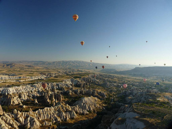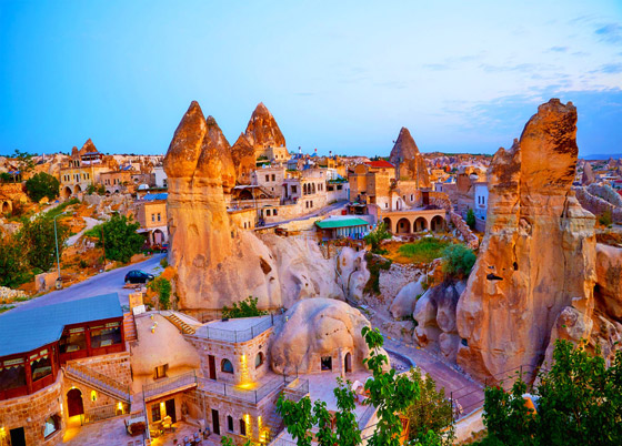 قرية غوريمي Göreme: من أجمل القرى في تركيا والعالم، نصف القرية على التل تتميز بالوجهات البحرية والمتاهات والكهوف، ويستطيع الزائر ركوب المنطاد ذات الهواء الساخن.