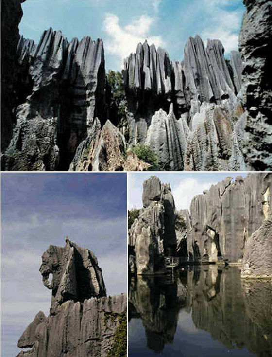 7- غابة الأحجار (الصين): تمثل غابة الأحجار بالصين مثالا حيا للتضاريس الكارستية، فهي تضم صخور تكونت من الحجر الجيري وشكلتها المياه المترسبة من سطح الأرض على شكل أعمدة لتخلق هذا الإبداع والمعروف بلقب "المعجزة الأولى في العالم" منذ عهد أسرة مينغ.