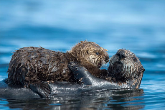 - صورة لأنثى القضاعة البحرية (ثعلب البحر) وهي تعتني بصغيرها بحنان، تلده ولا تتركه لمدة ستة أشهر تقريباً، في إقليم كامتشاتكا.