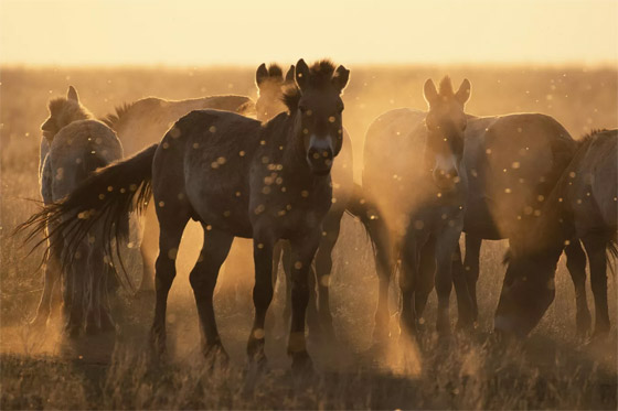 - خيول برزيوالسكي عند غروب الشمس في مقاطعة أورينبورغ.